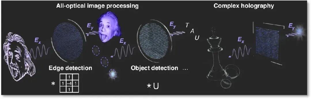 系统搭建简单易集成:无需复杂的多组件光学系统,仅需超表面搭配基础的偏振片、透镜与相机,即可完成全光图像处理,可直接嵌入现有显微镜、相机、激光通信终端等设备中。