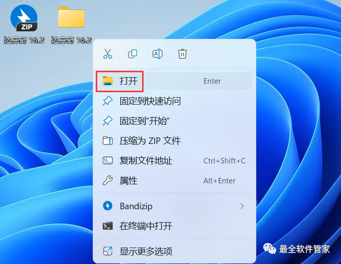 2、右键【打开】解压后的文件夹