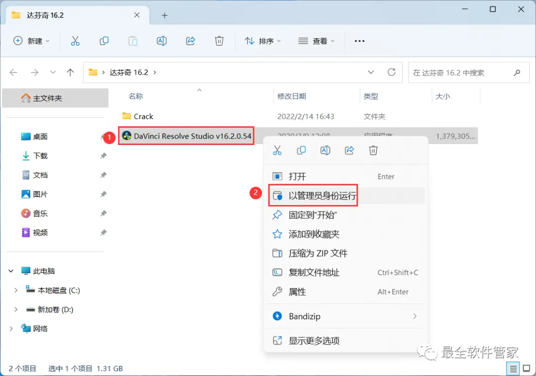 1、下载达芬奇 16.2软件安装包到电脑上,右键选择【解压到达芬奇16.2\】