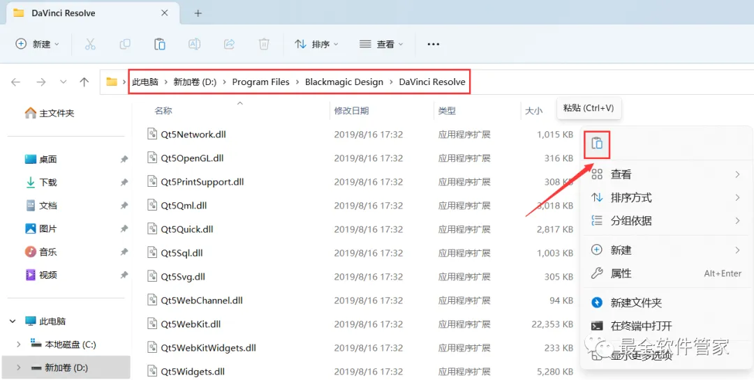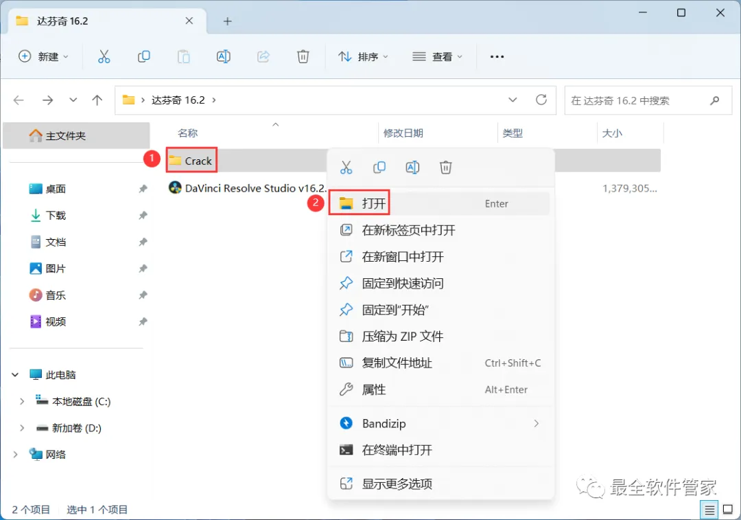 12、回到达芬奇 16.2文件夹,找到【Crack】文件夹,右键【打开】它
