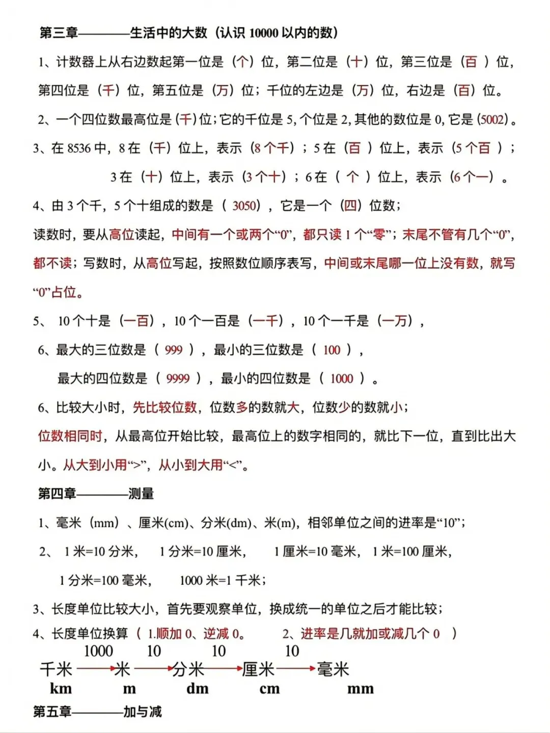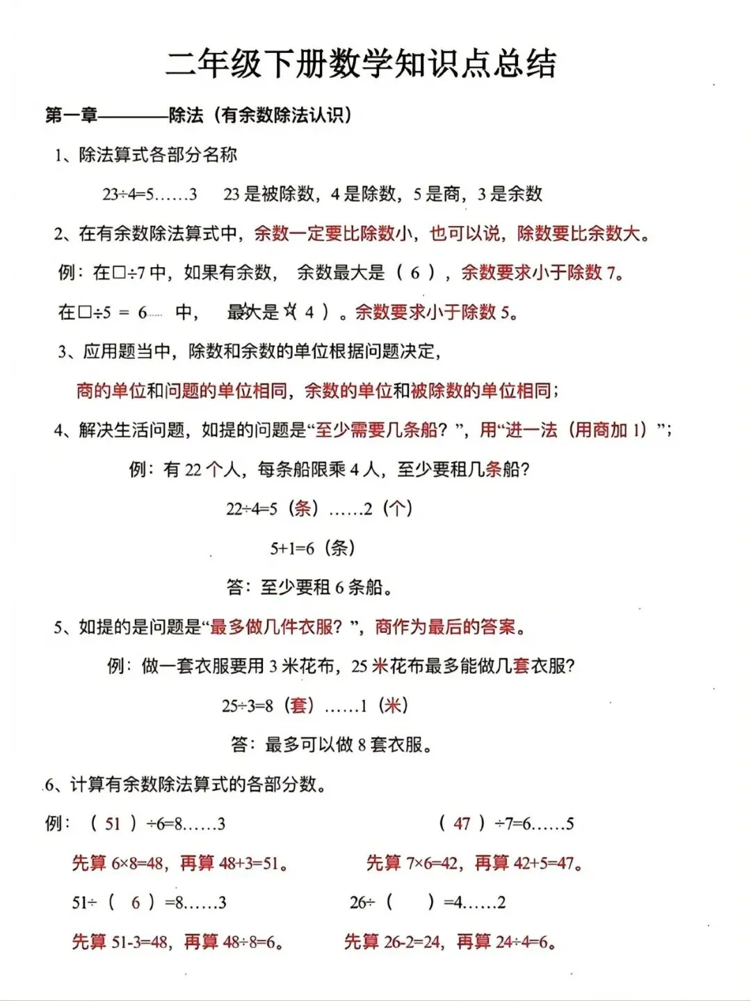 26春二年级下数学单元知识点总结,电子版可打印