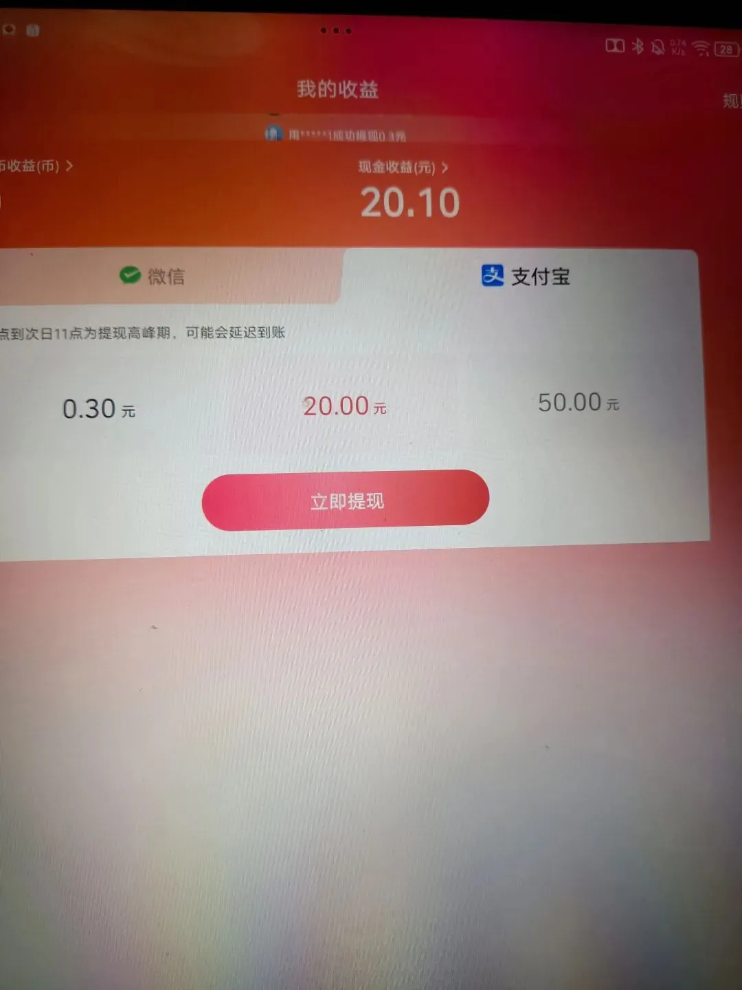 大家元宵节快乐,早上我一大早就睡醒了,然后就想着昨天我的一个APP又达到20了,今天我就给他提现了。这个APP,只有微信和支付宝可以到账。第一步先扫码下载。第二步打开页面最底部的领现金,将会显示任务页面。