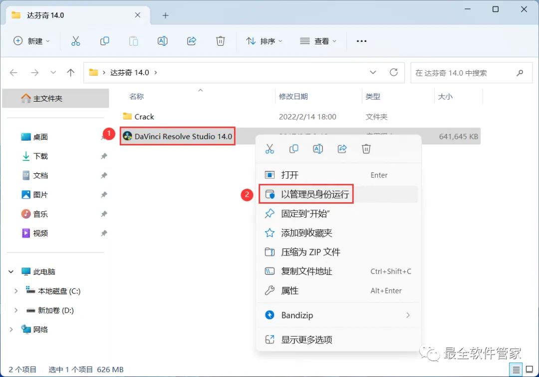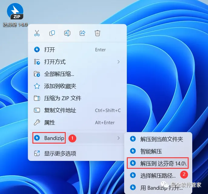 1、下载达芬奇 14.0软件安装包到电脑上,右键选择【解压到达芬奇14.0\】