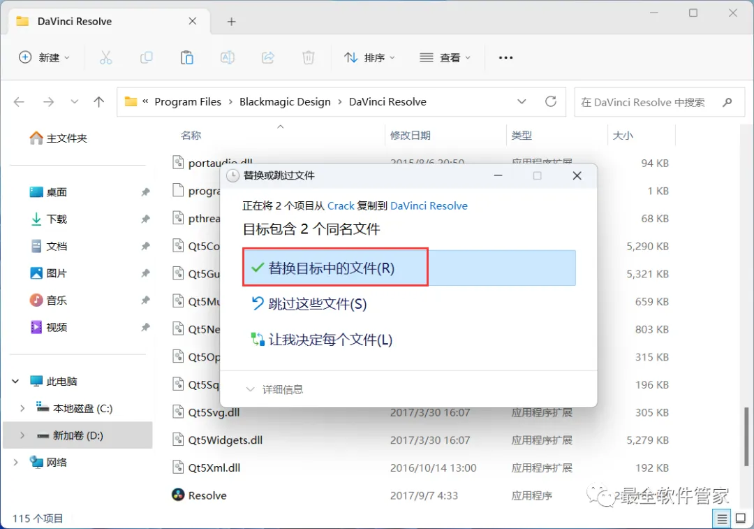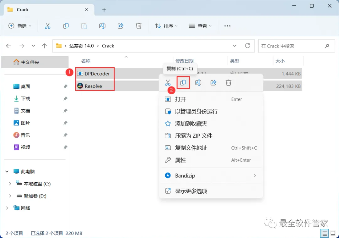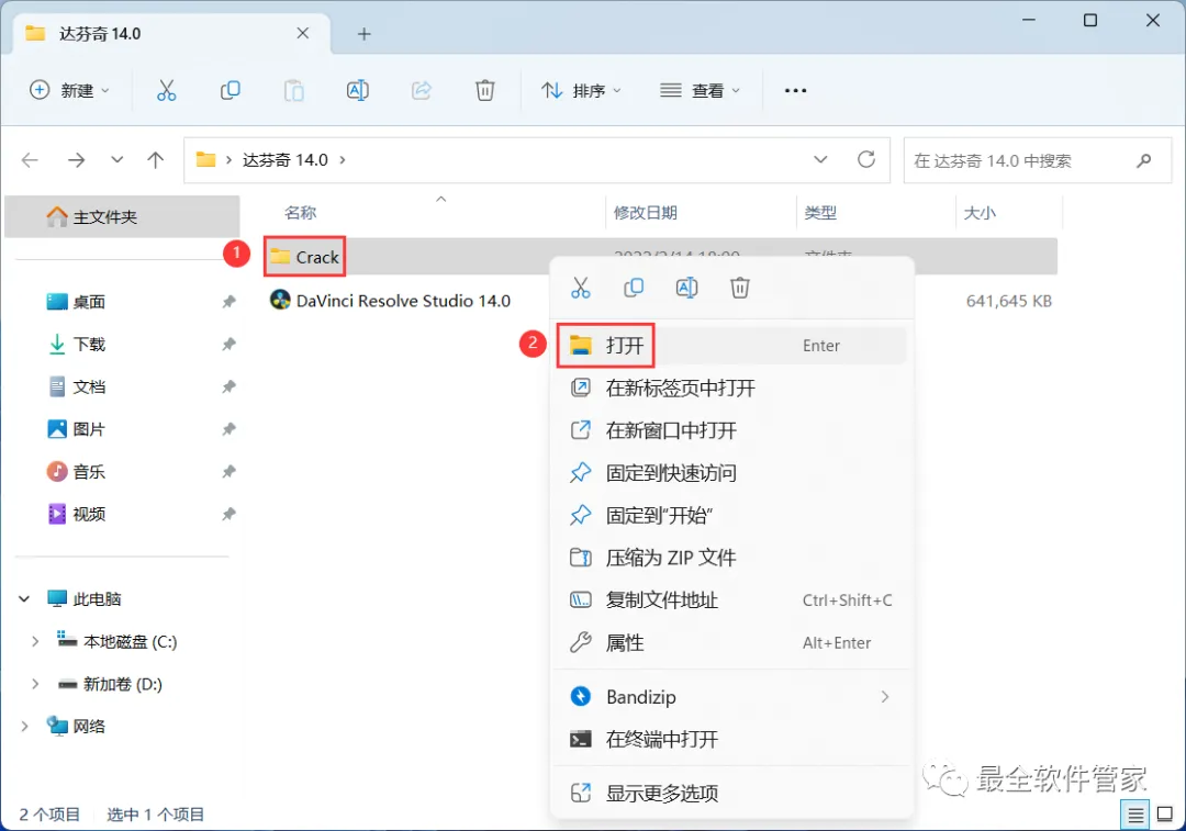 11、回到达芬奇 14.0文件夹,找到【Crack】文件夹,右键【打开】它