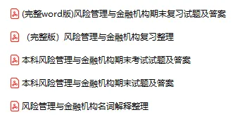 今天分享的资料是「1175-风险管理与金融机构」电子版+学习笔记+知识点总结+期末考试重点+复习资料+习题集及答案+名词解释+历年真题试卷及答案+题库及答案+复习重点+思考题及参考答案+公式总结+考试重点基础题+知识总结+高清PDF可打印+免费分享!