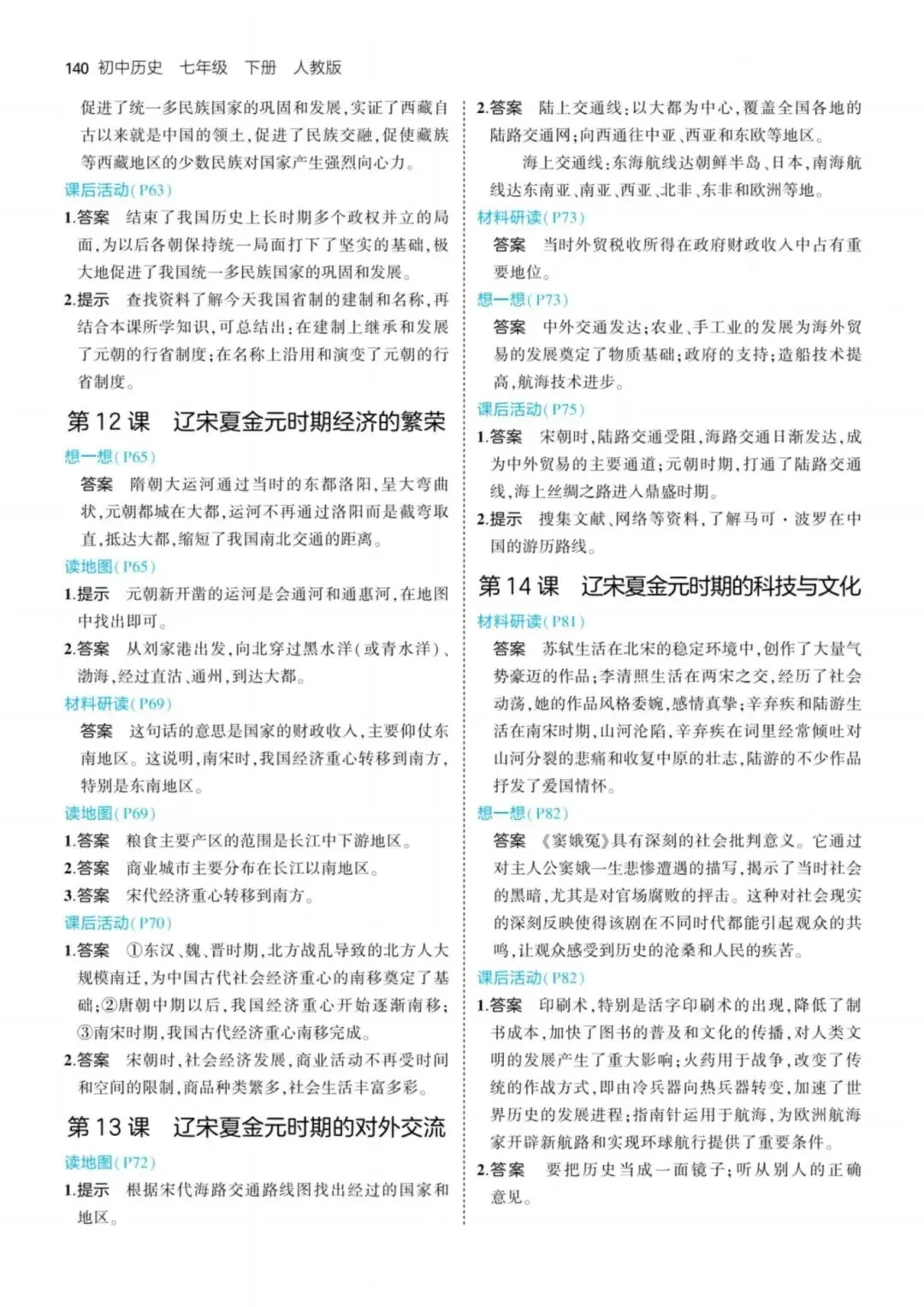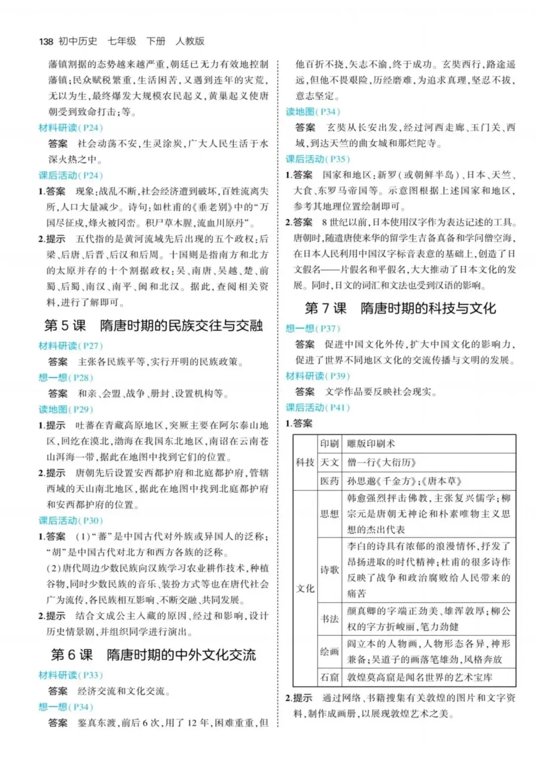 七年级下册历史课本课后答案,完整电子版可打印