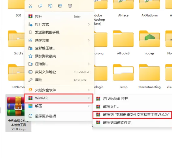 右键单击这个压缩包,选择您常用的解压缩软件,选择【解压到“专利申请文件文本检查工具V x.x.x\”】