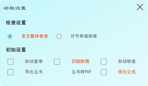 在这里我们可以对检查模式进行选择,全文整体检查:同时对五书进行检查(会员功能),分节单独检查:分别对五书进行检查,对于存在公式或表格的案件,在检查前请开启<优化公式>(会员功能)