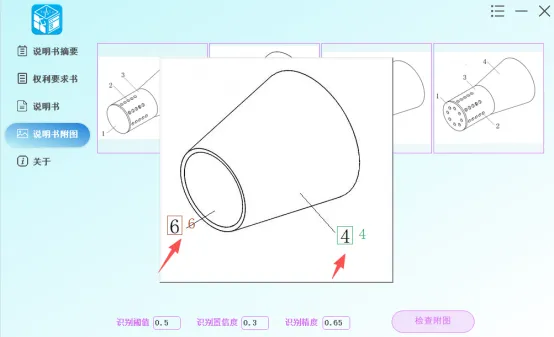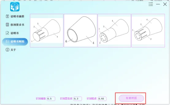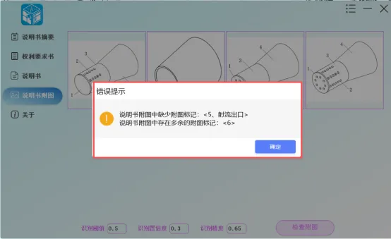 在说明书附图界面,点击检查附图按钮即可自动识别附图中的标号,并进行自动检查