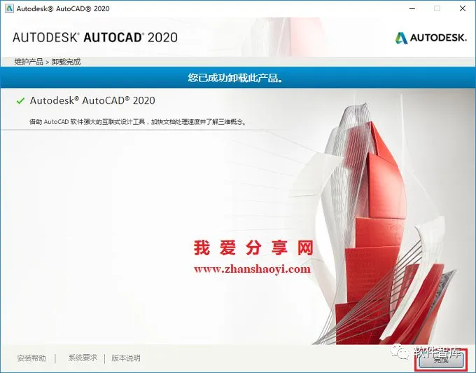 8.点击【完成】,程序列表中Autodsk AutoCAD 2020-简体中文(Simplified Chinese)就会自动消失了