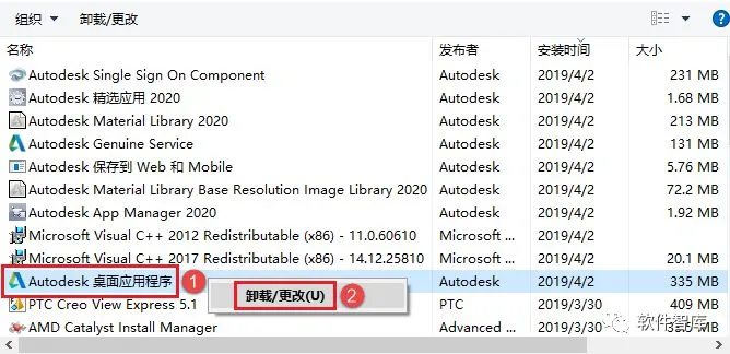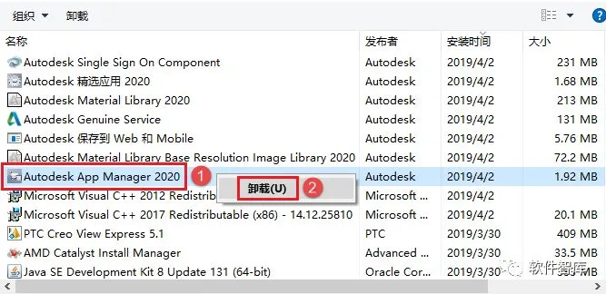 13.然后找到Autodesk App Manager 2020,鼠标右击选择【卸载】