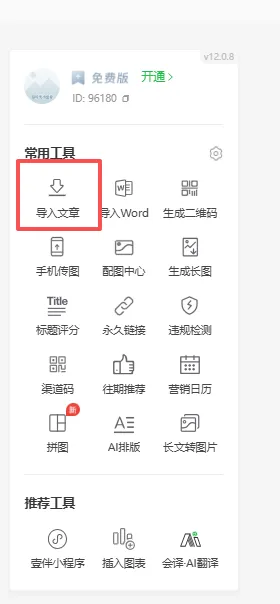 这样就安装好了,重新打开公众号后台就会出现一系列小工具,我用的最多的就是常用工具里面的导入文章: