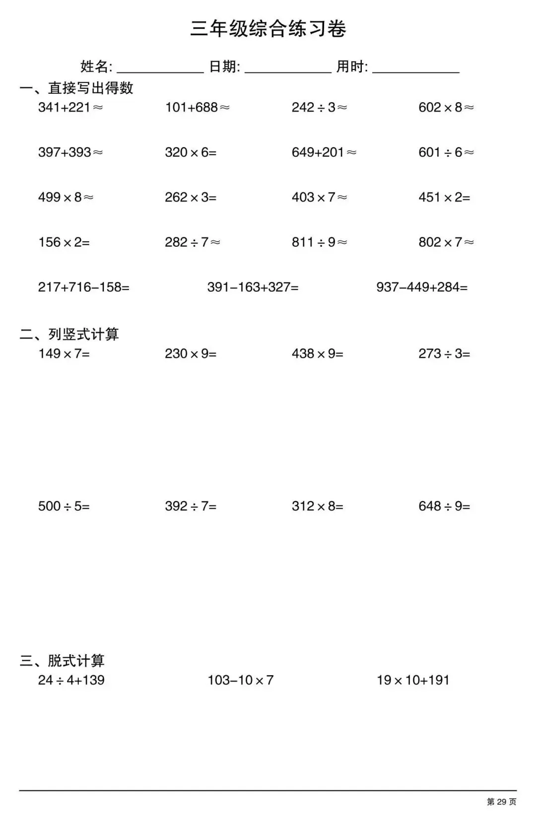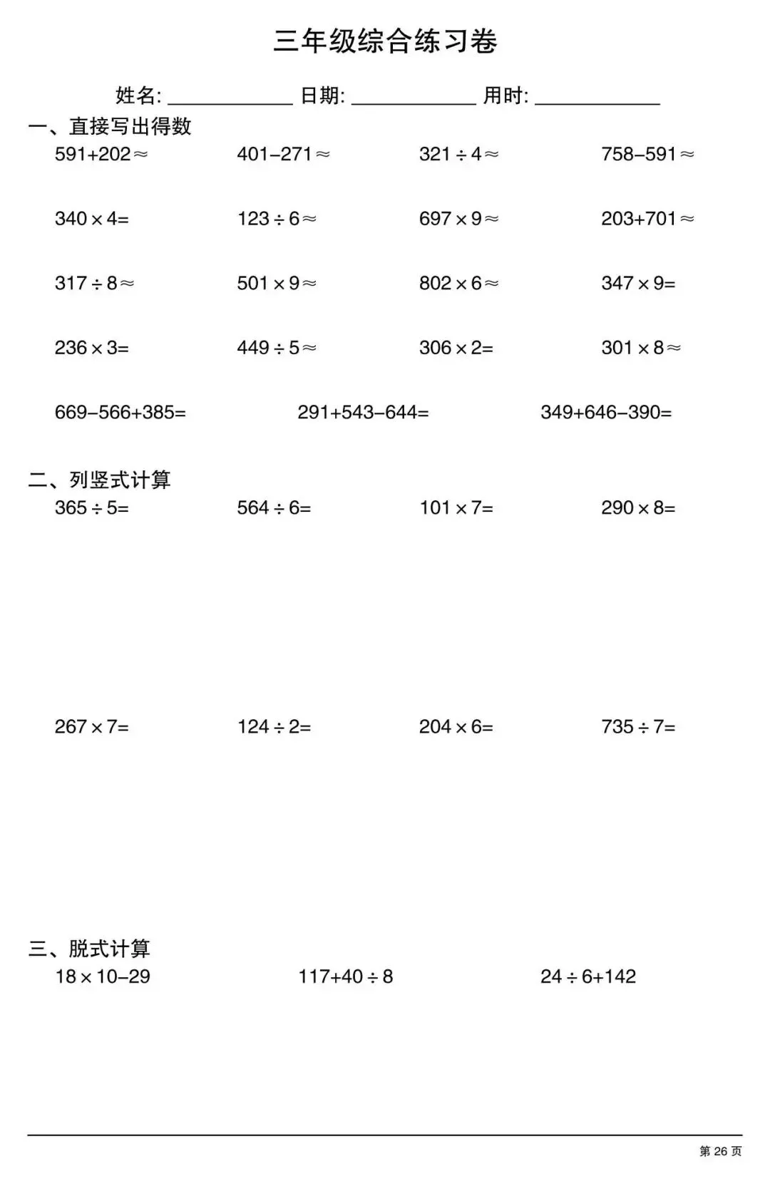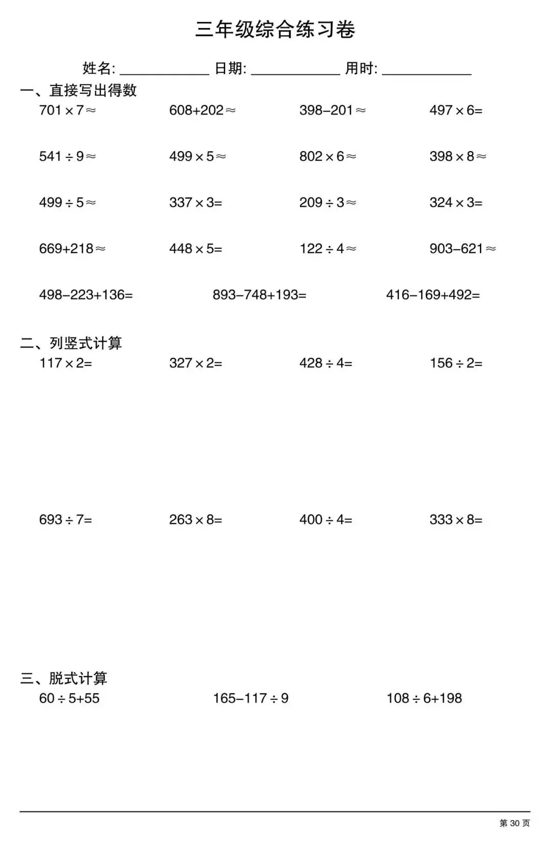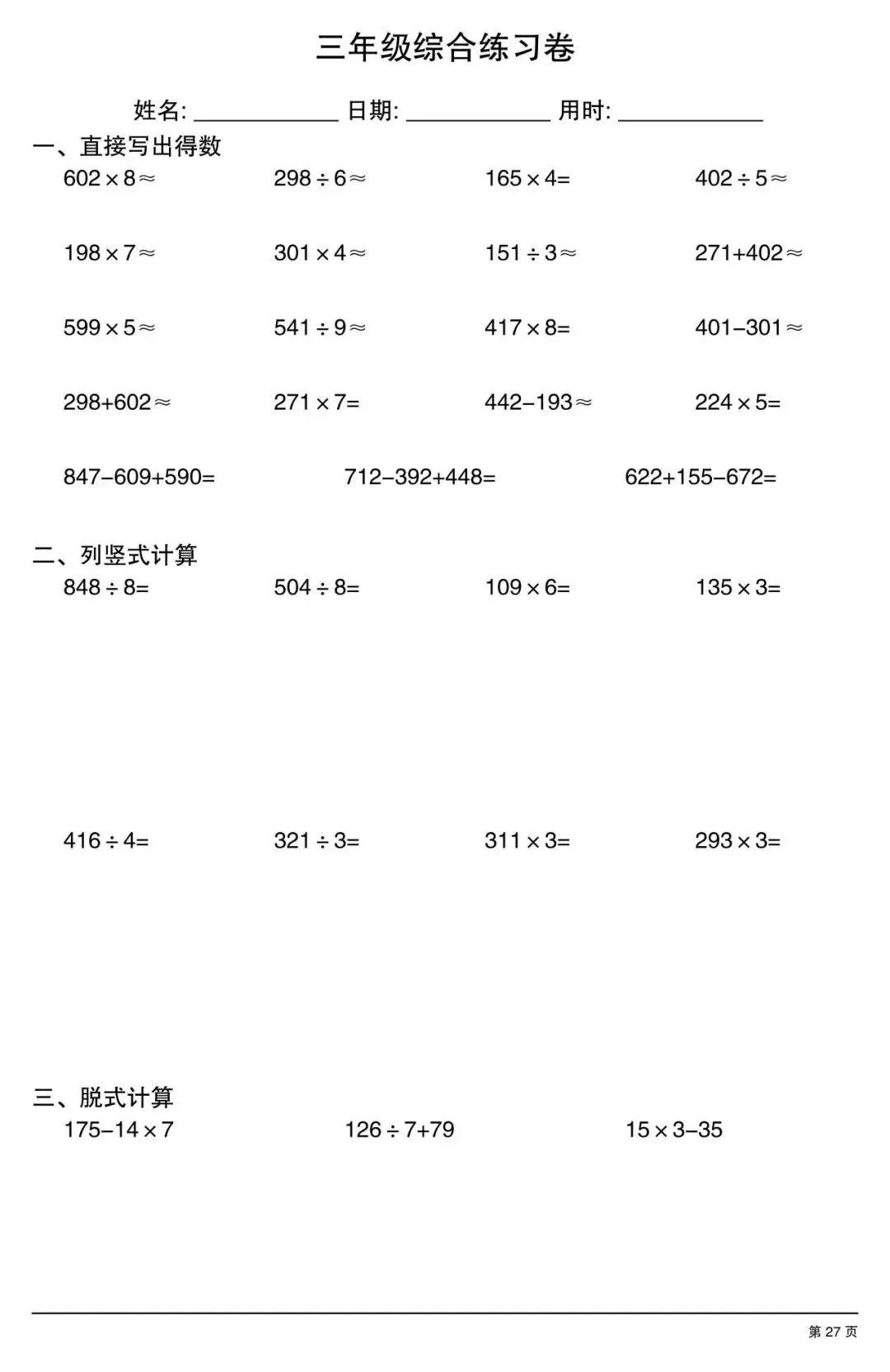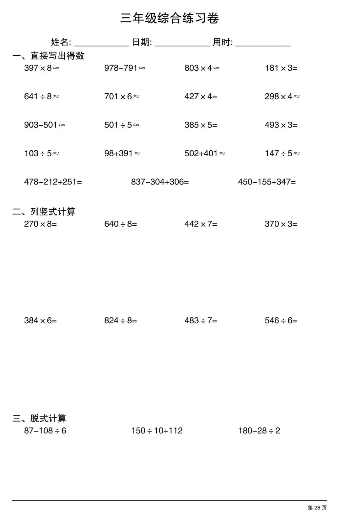 今天涵涵的学霸日记给大家分享的是三年级计算综合练习卷,专为三年级孩子整理的下册全科综合练习卷新鲜出炉,贴合最新教材大纲,题型全面、难度适中,从基础巩固到能力提升,一套满足所有练习需求!