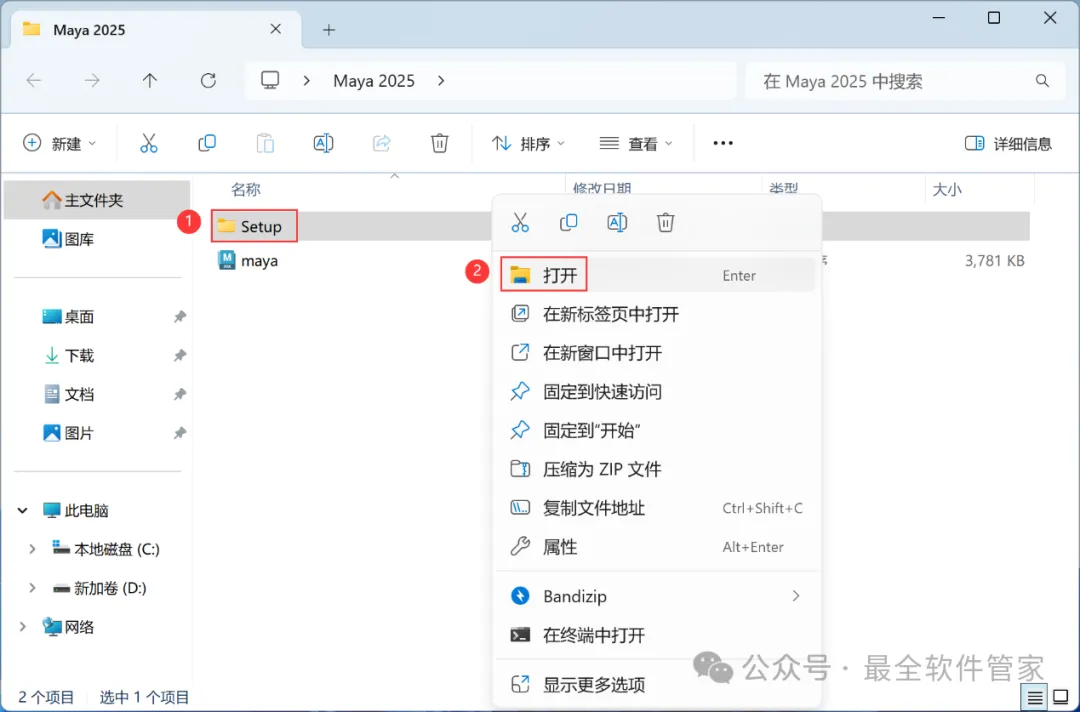 1、下载Maya 2025软件安装包到电脑上,右键选择【解压到Maya 2025\】