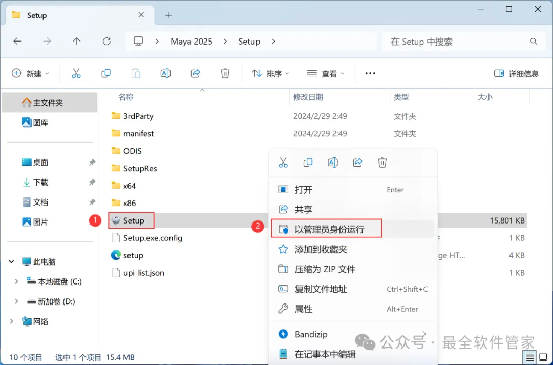 4、找到【Setup】应用程序,右键选择【以管理员身份运行】它
