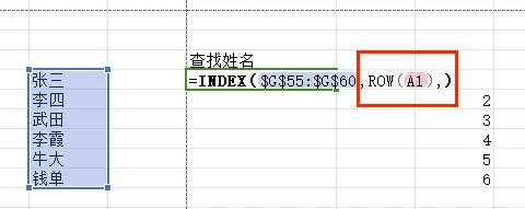 Row(A1),返回数字1,作为index函数的参数2使用。
