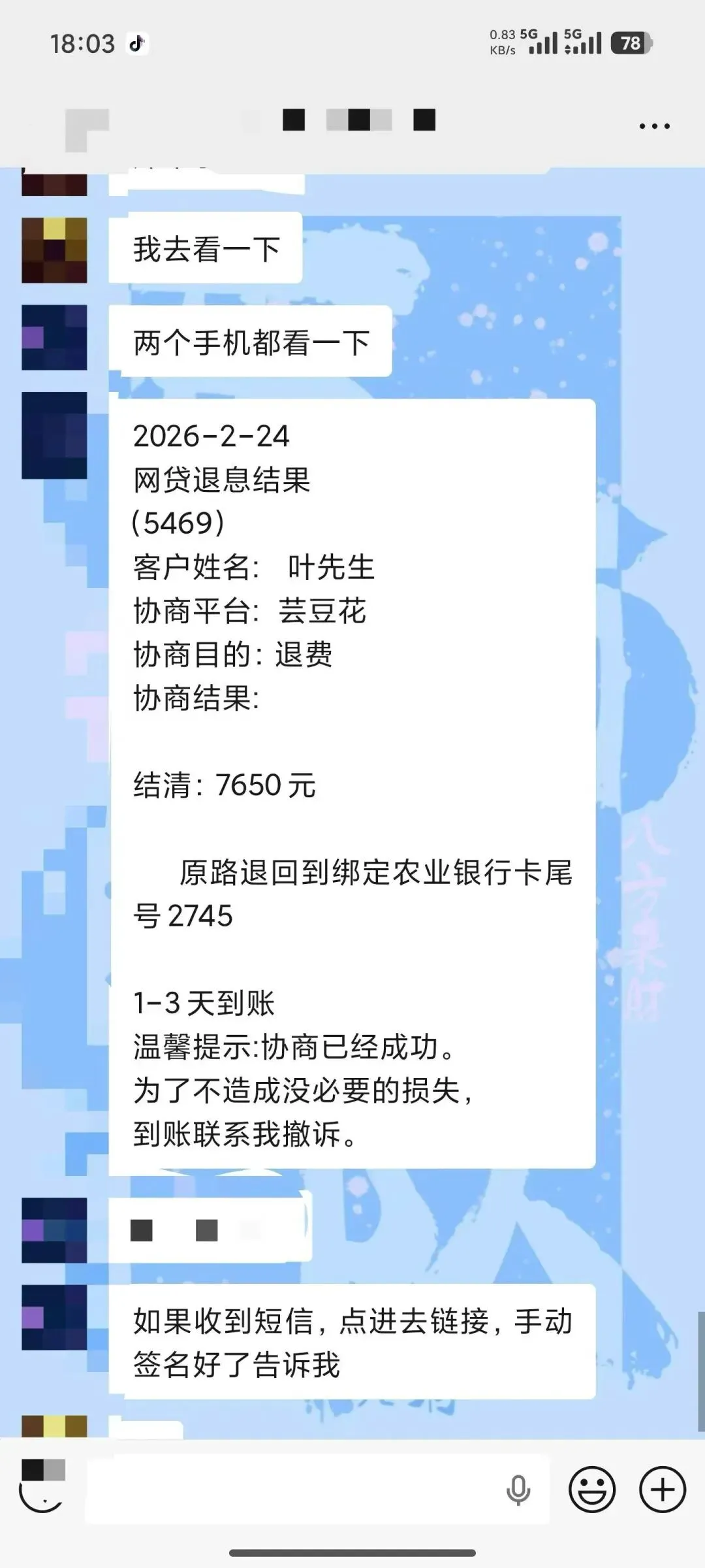 2026年2月24日,叶先生收到了农业银行卡的到账提醒——7650元,这笔钱是他通过“退息”从网贷平台“芸豆花”追回来的。而就在几天前,他刚结清了这笔网贷,差点就把App卸载了。