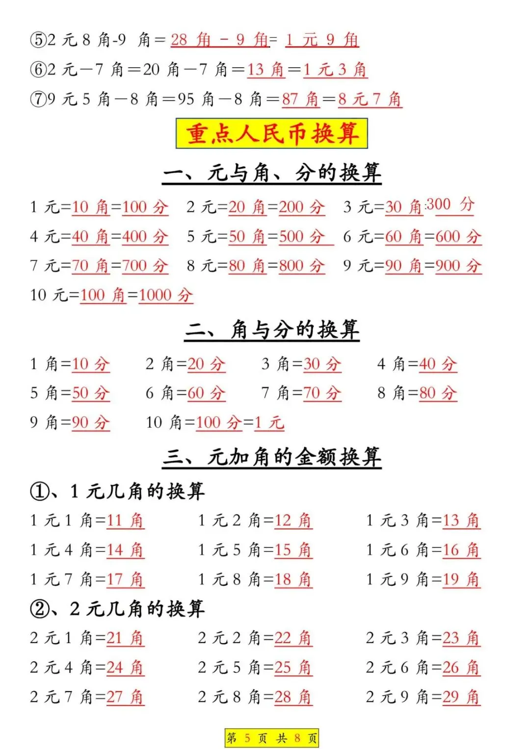 一年级下册数学重点必背汇总,共8页,电子版可下载可打印!把所学的核心知识点清晰整理出来,孩子省时省力,更好地记住重点,在作业和考试时提高准确率和解题速度,让孩子打下坚实基础。需要的家长朋友们给孩子打印出来,读一读、记一记!
