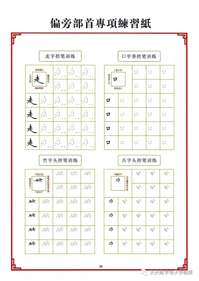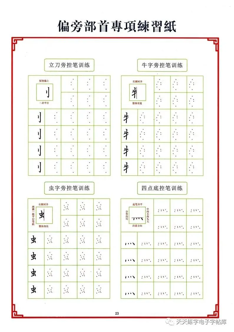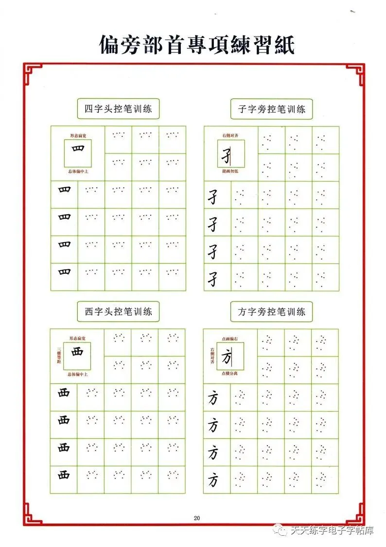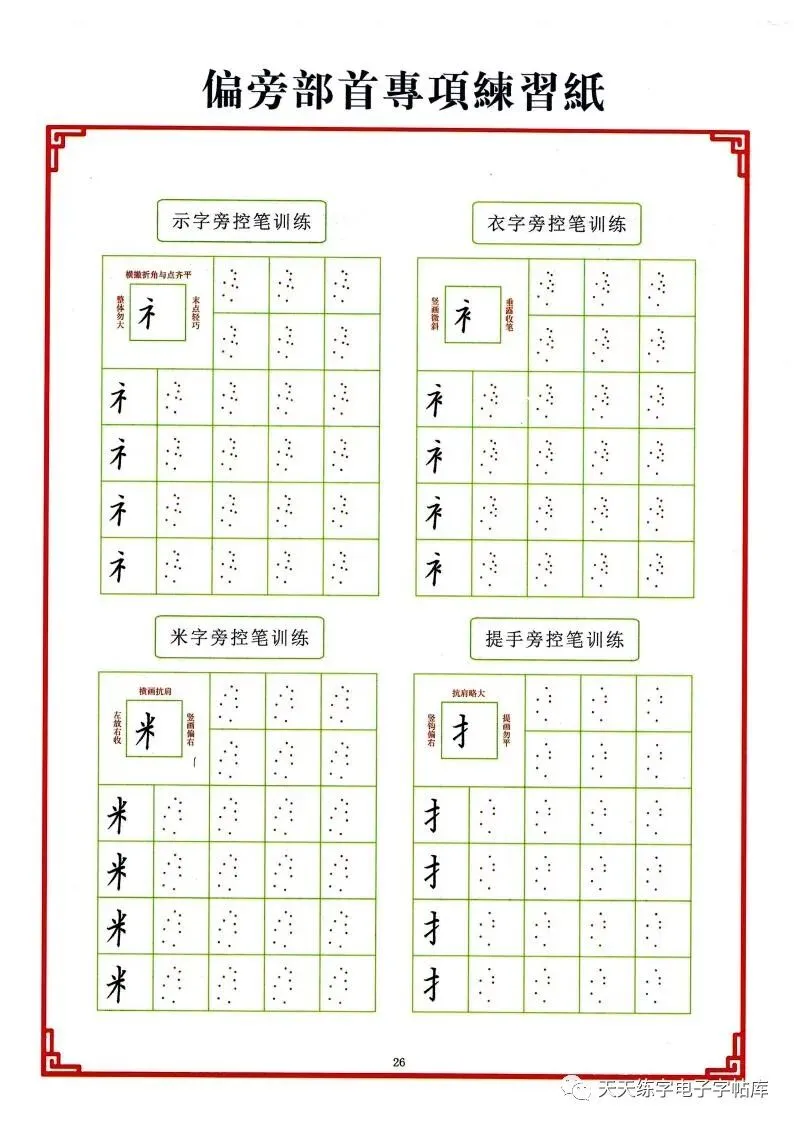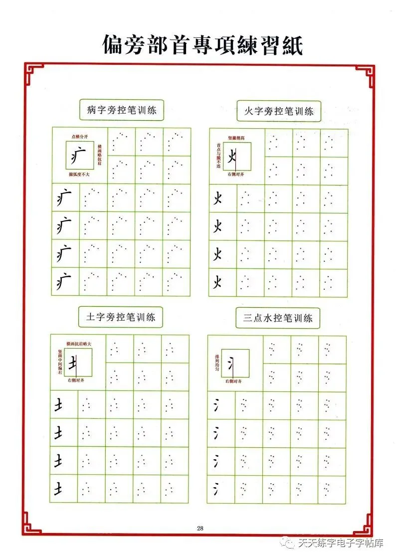 点阵笔画控笔训练+偏旁+独体字电子版,收藏打印!