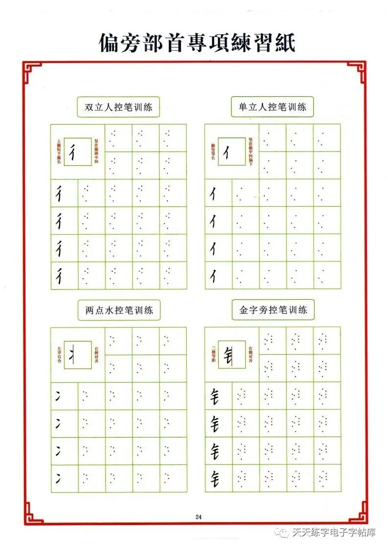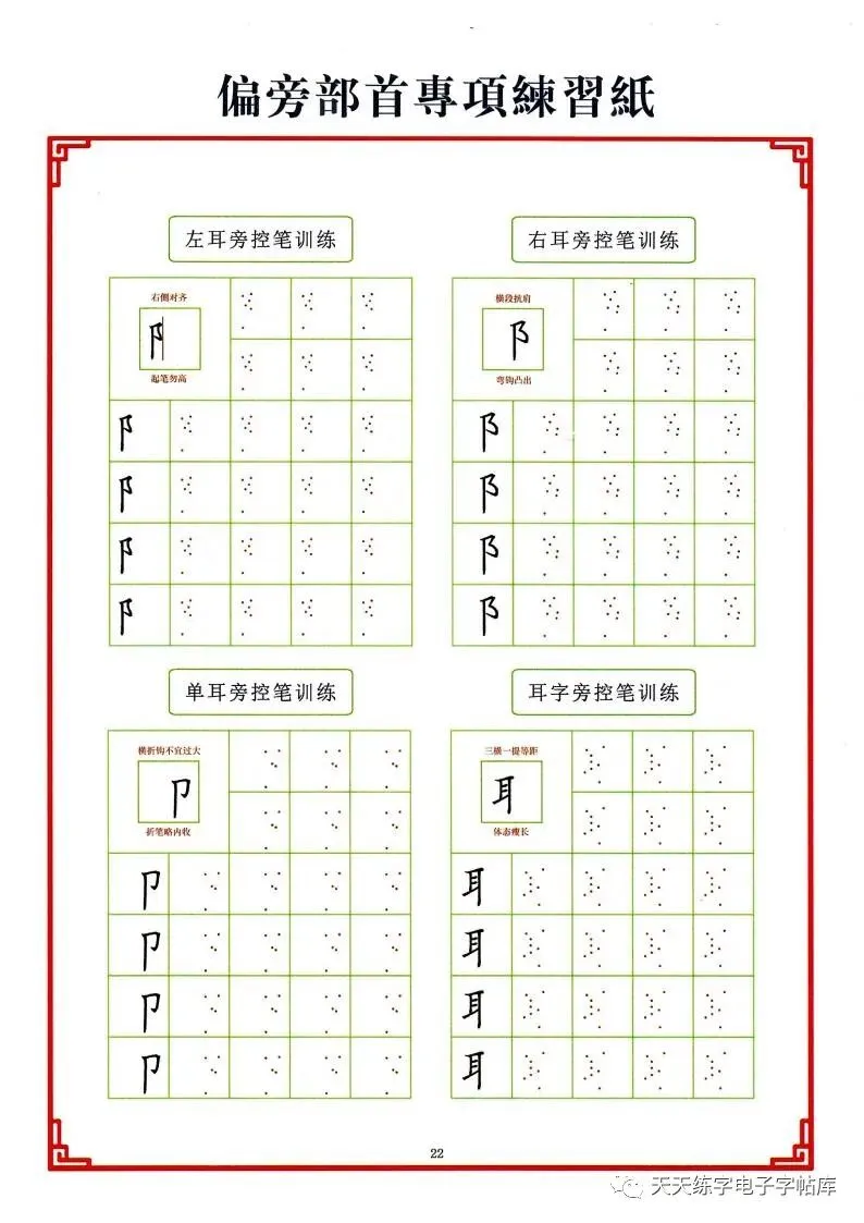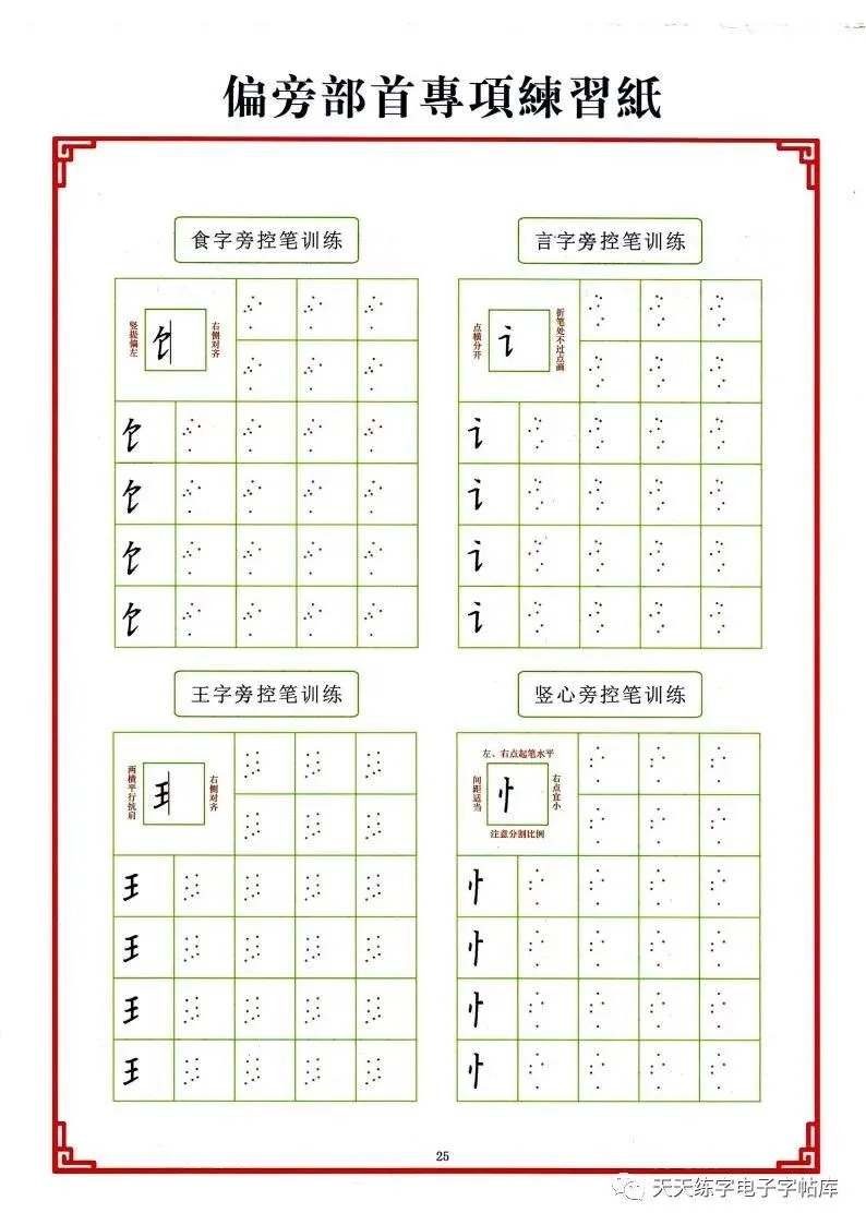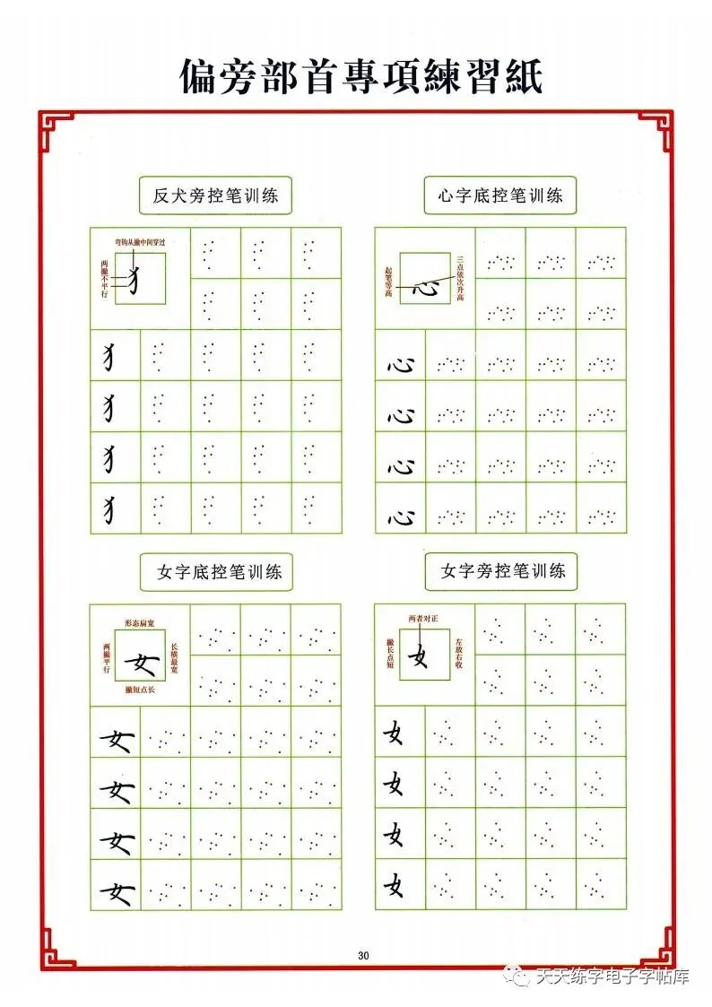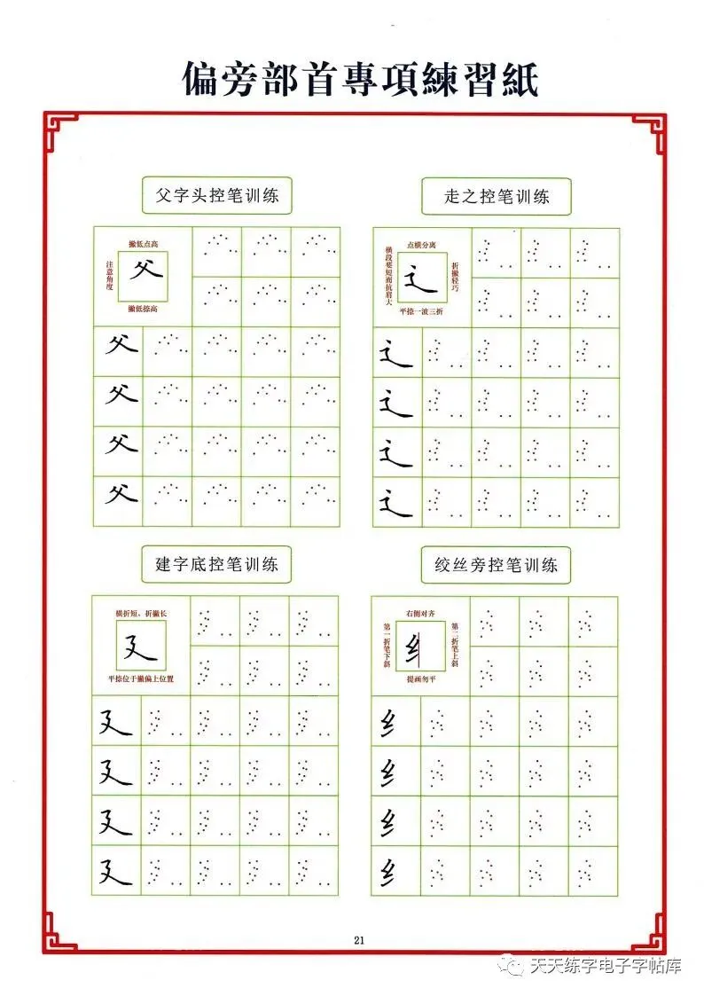 点阵笔画控笔训练+偏旁+独体字电子版,收藏打印!