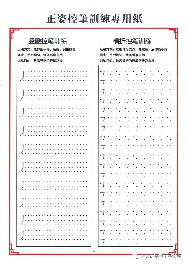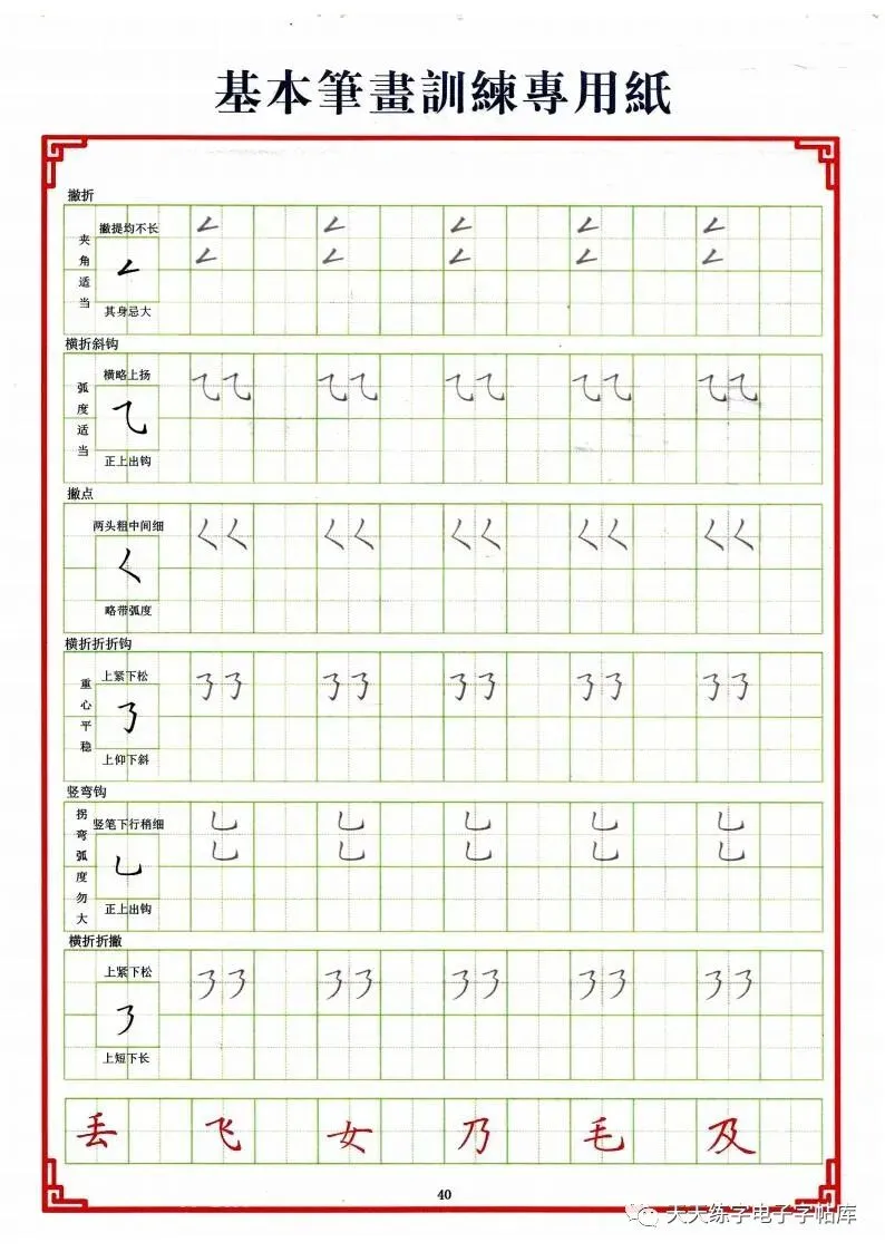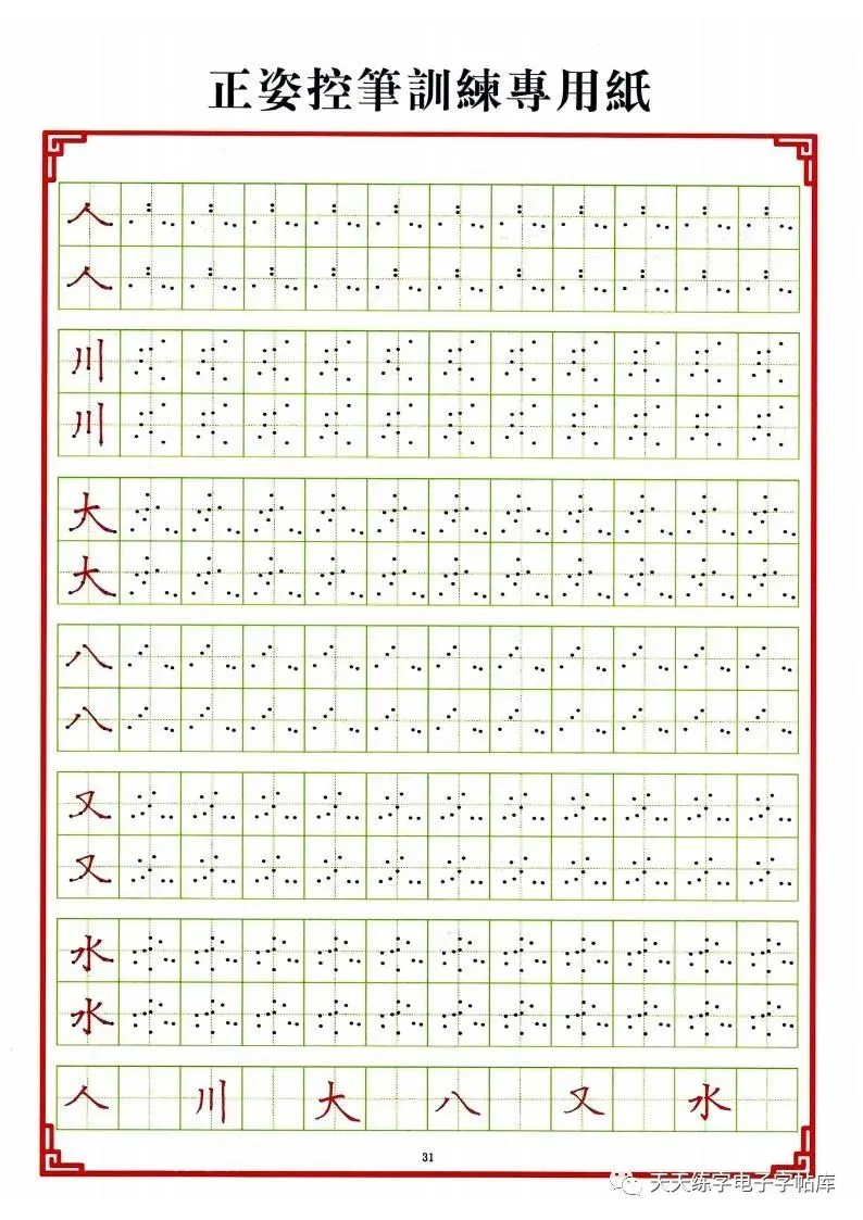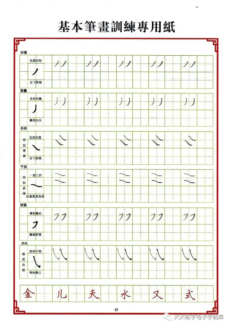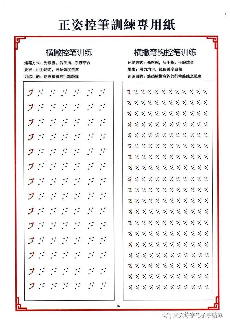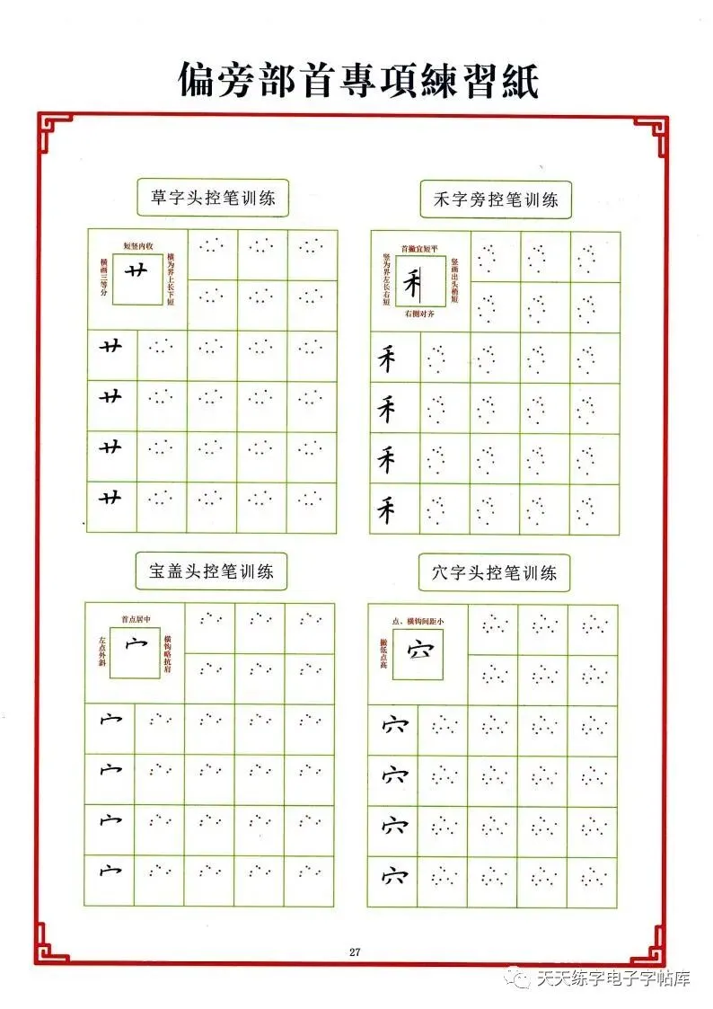 点阵笔画控笔训练+偏旁+独体字电子版,收藏打印!
