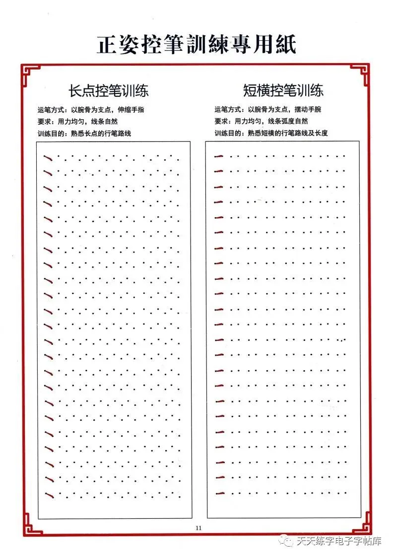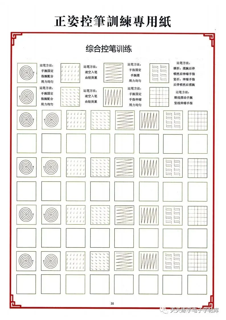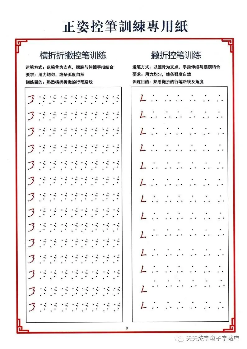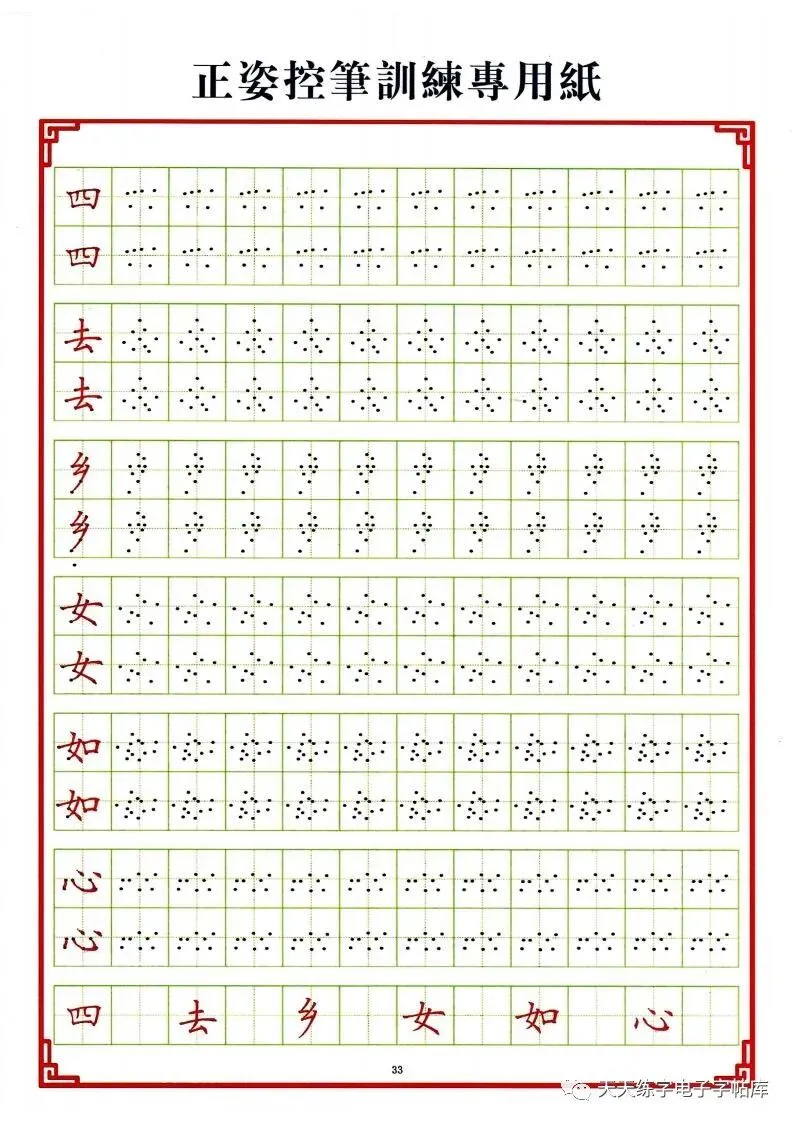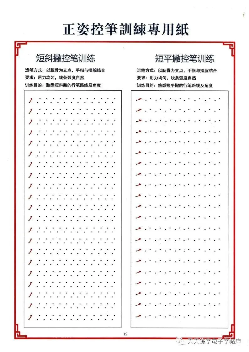 点阵笔画控笔训练+偏旁+独体字电子版,收藏打印!