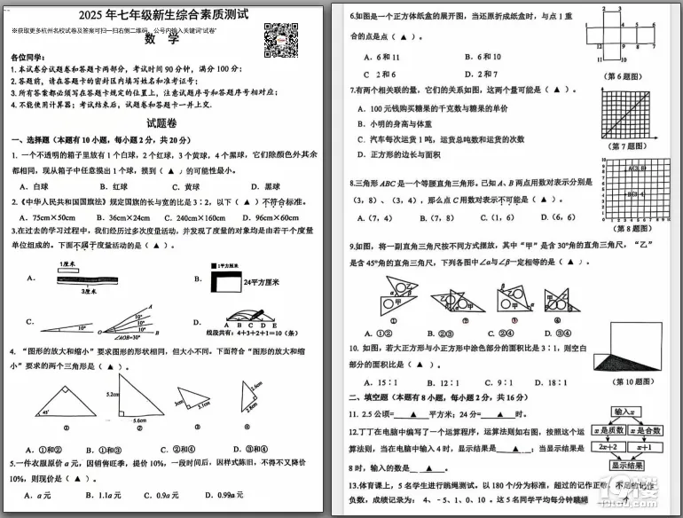 免费领取!名校新初一分班考数学试卷,可下载打印 | 分享
