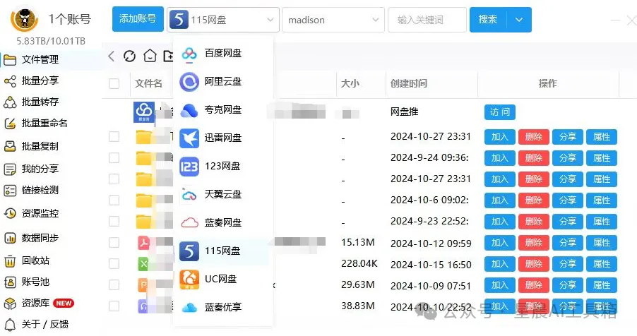 自媒体素材整理 :自媒体创作者素材来源广,常分散在多个网盘。借助这个工具,能批量转存、整理素材,还能快速分享到不同平台。