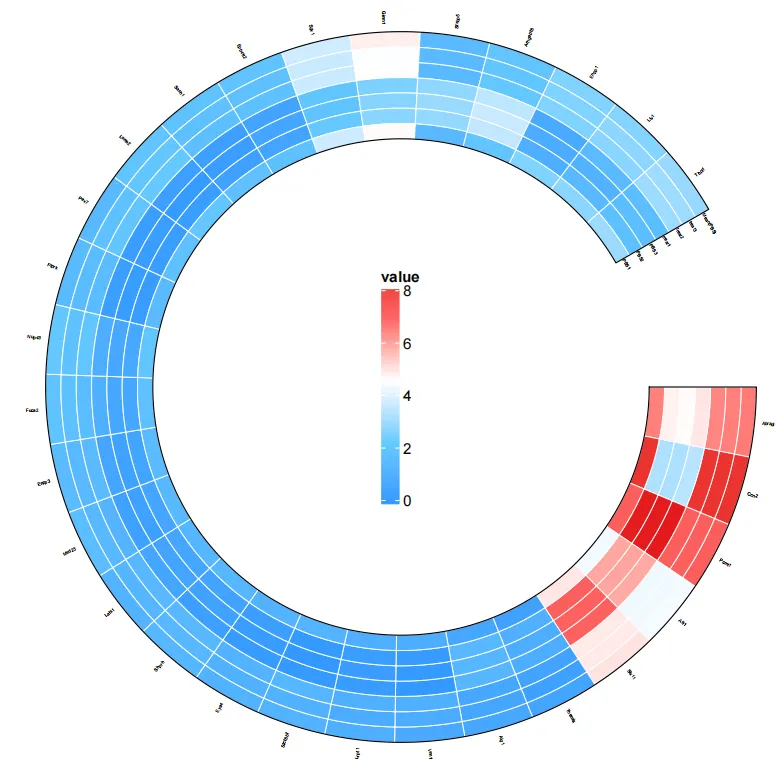 有了热图,我们就可以组合在其他图上,让图更加高大上啦!比如,和代谢通路图组合,和示意图的组合等等。