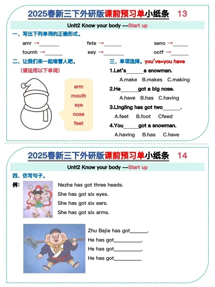 26新版三下外研版课前预习小纸条(完整电子版可打印)