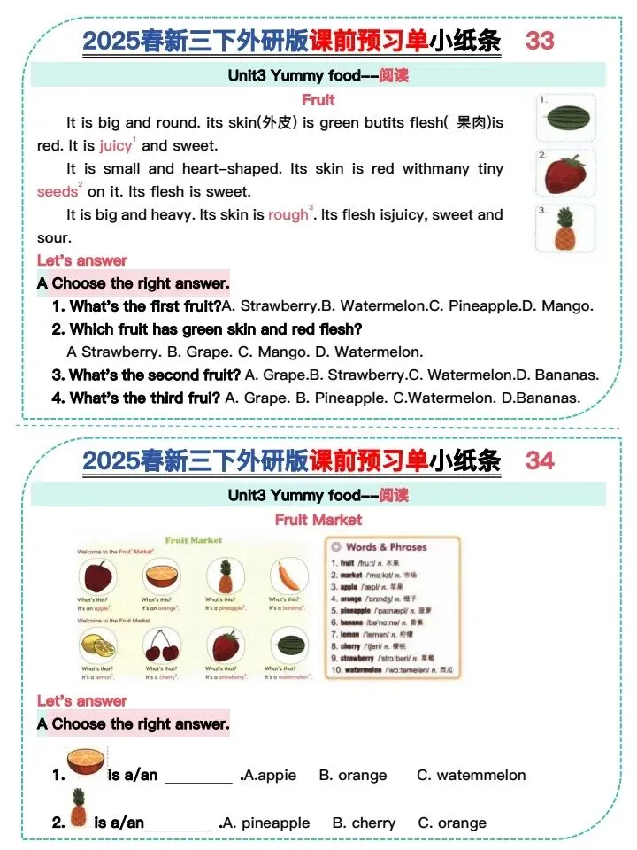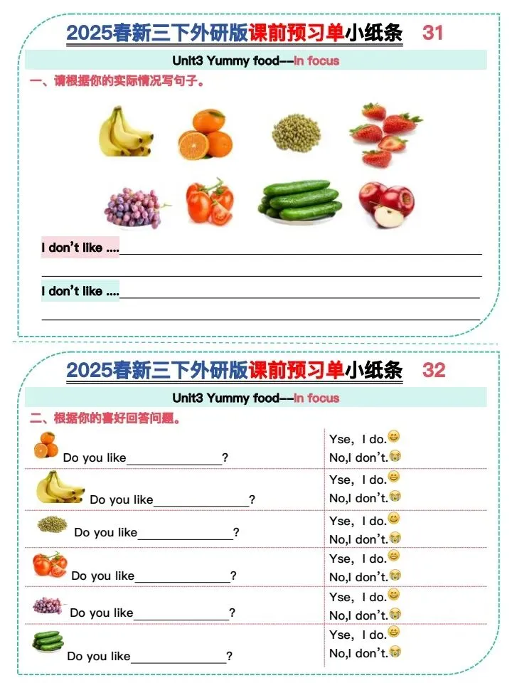 今日份分享26新版三下外研版课前预习小纸条(完整电子版可打印)!这份资料已经整理成可打印版本,方便孩子随时翻看学习,建议家长先收藏,再转发给身边有需要的家庭,一起帮助孩子高效学习~