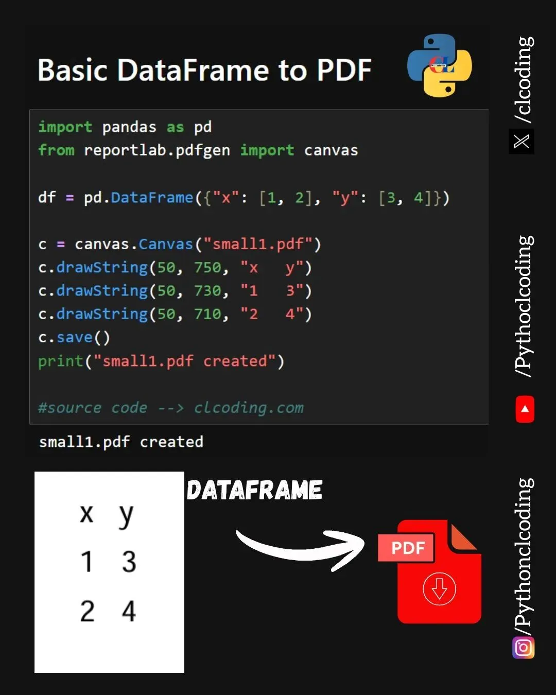 今天,我将带你用Python实现一个简单的功能:将Pandas DataFrame转换为PDF文件。即使你从未接触过PDF生成,也能在几分钟内上手。