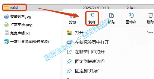 2.打开刚刚解压的文件夹,鼠标右键点击【Mini】选择【复制】