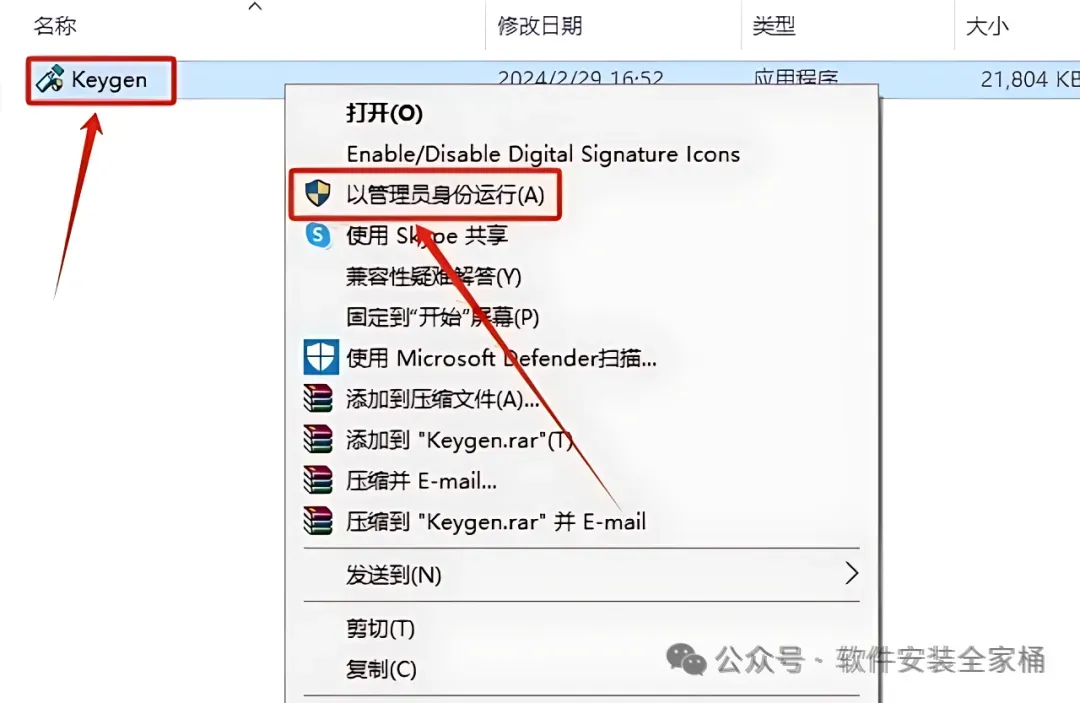 13.鼠标右键【Keygen】注册机,点击【以管理员身份运行】。