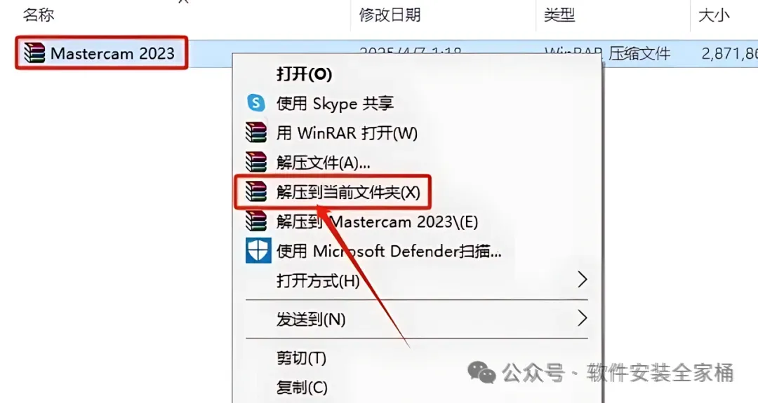 1.打开下载的Mastercam软件安装包,鼠标右击压缩包选择【解压到当前文件夹】。