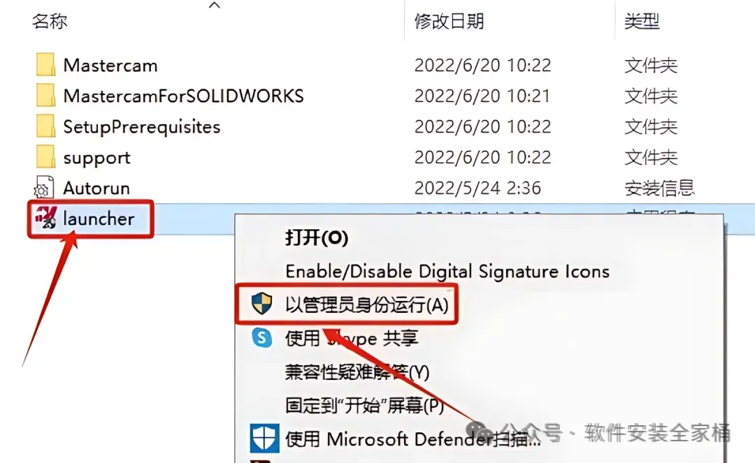 4.鼠标右击【launcher】安装程序,选择【以管理员身份运行】。