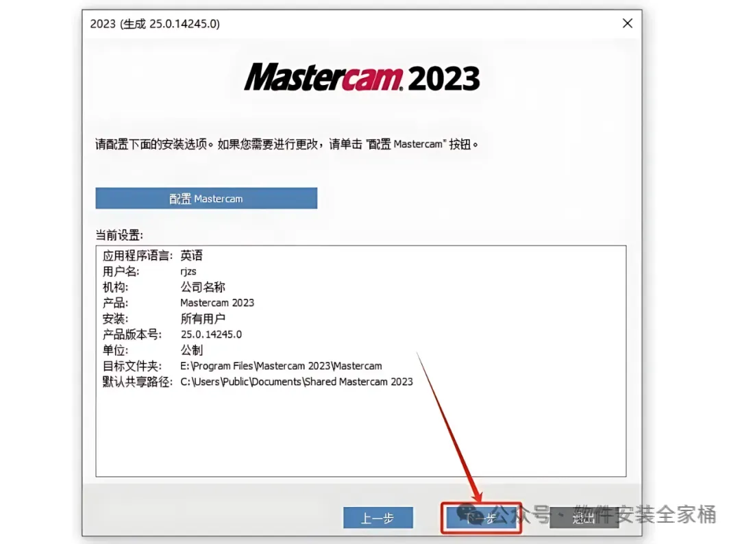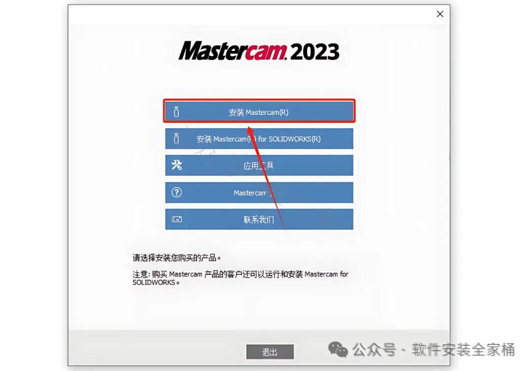 5.安装程序打开后,直接点击【Mastercam 2023 安装】。
