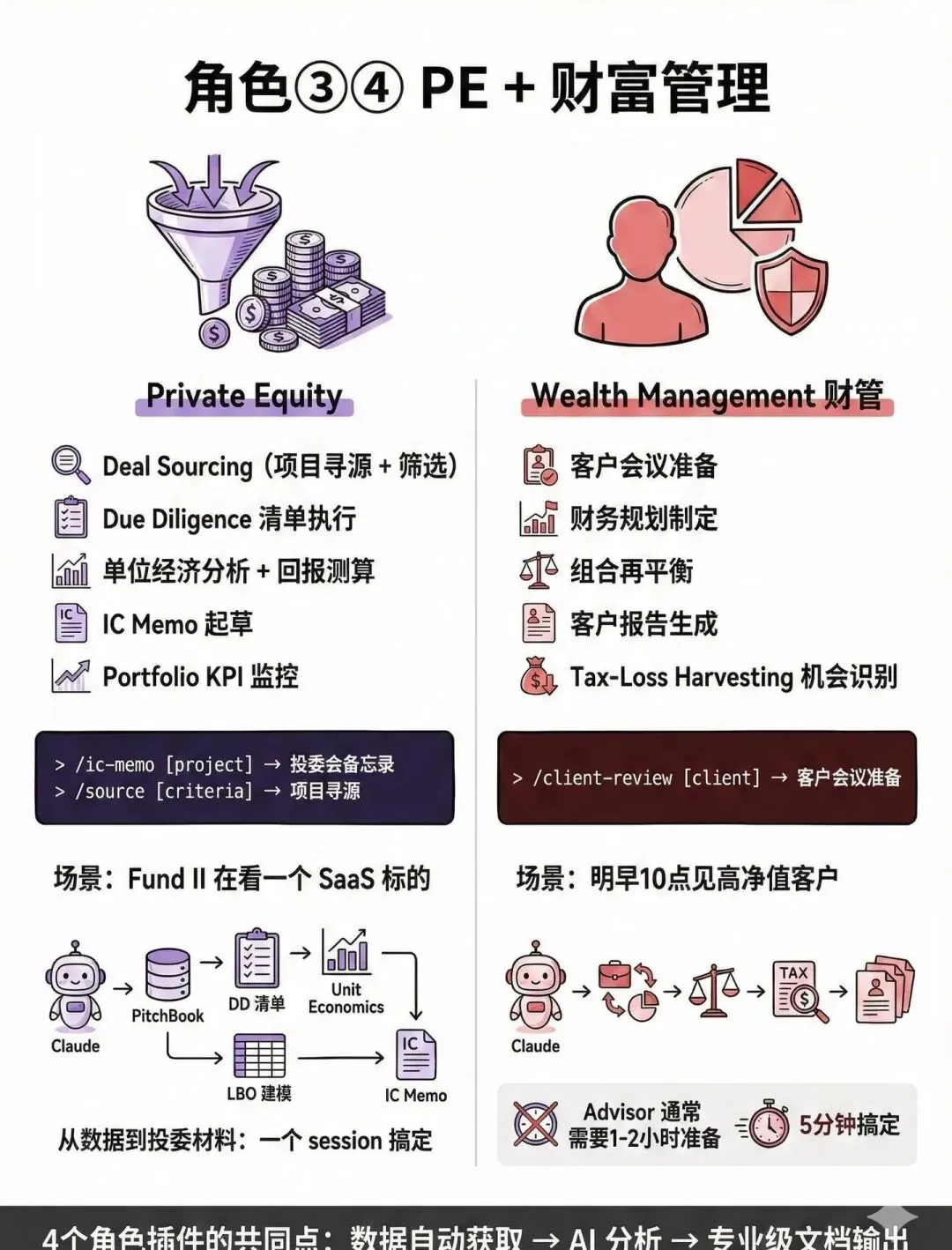 对金融从业者来说,这套插件就是目前最完整、最专业的AI金融工具集!无需懂编程,无需手动对接多数据源,不用熬夜做报告、搭模型,简单发送指令,就能一键拥有华尔街分析师的专业能力,效率翻倍、门槛降低,投行、证券、PE、财富管理领域,都能找到适配功能,堪称金融人的“办公神器”,也给金融行业降本增效、数字化转型,提供了全新解法!