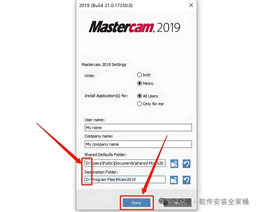 9.软件的默认安装路径为系统C盘。直接将盘符C改为D或者其它磁盘即可,然后点击【Done】。