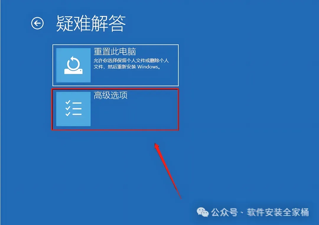 20.重启后会自动进入下图所示的界面,点击【疑难解答】。