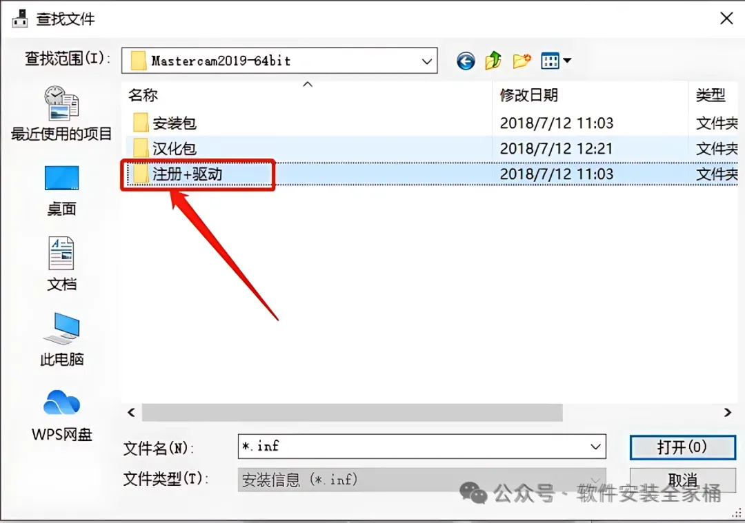 13.返回到解压的【Mastercam 2019】文件夹中,然后打开【注册+驱动】文件夹。