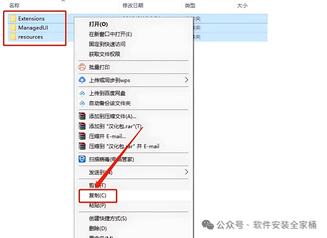 42.在打开的文件夹中全部选中如下图所示的文件,然后鼠标右击选择【复制】。