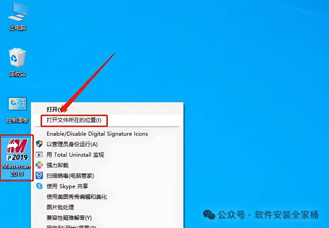 43.在桌面上找到Mastercam软件图标,鼠标右键点击【打开文件所在的位置】。