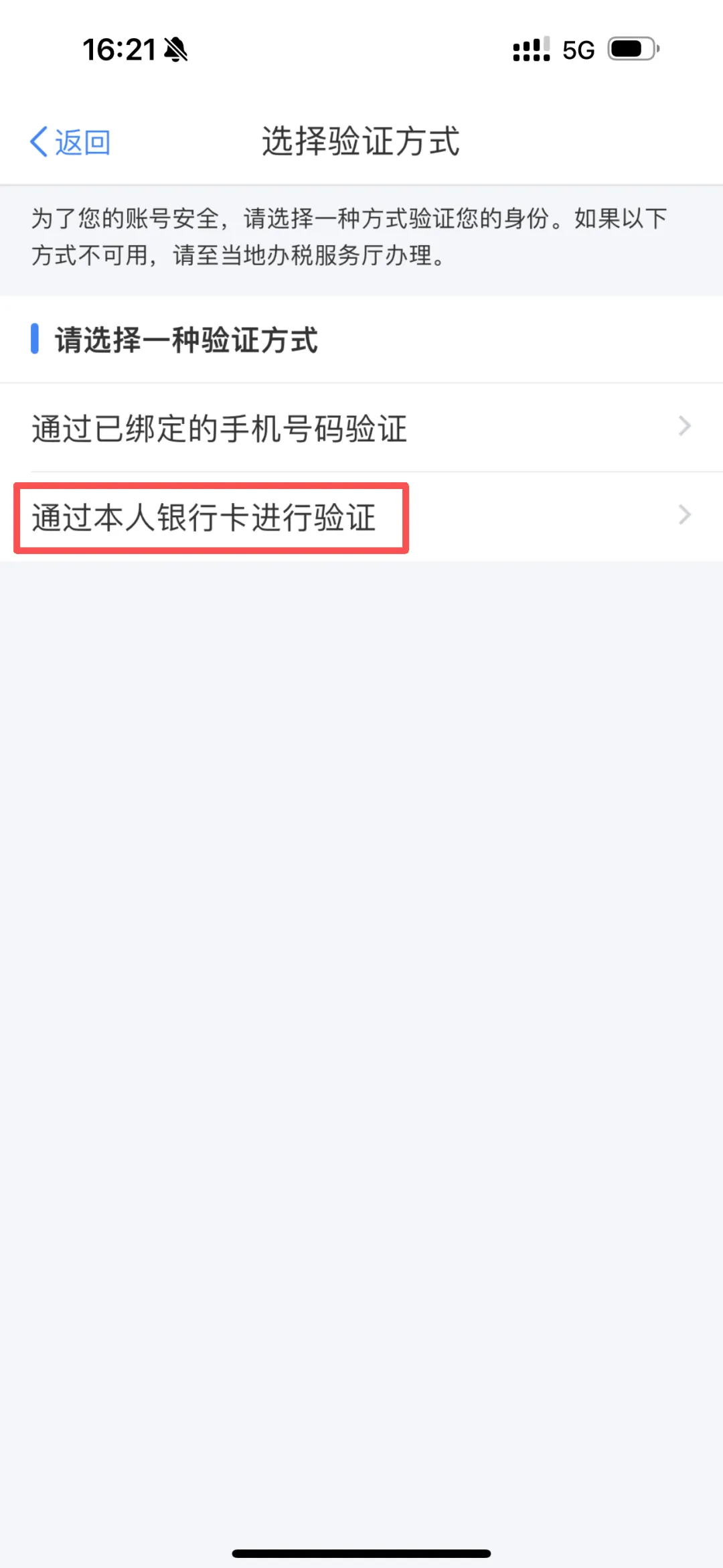 方式二:本人银行卡验证