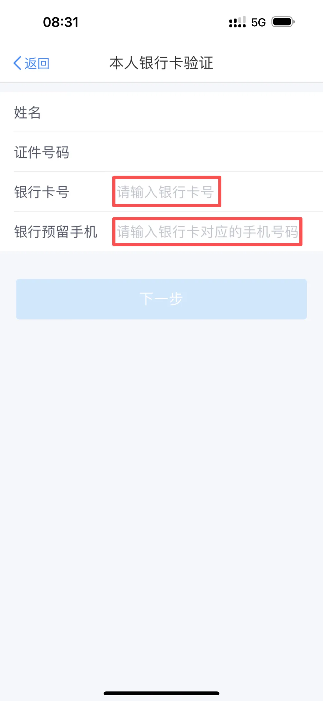 填写银行卡号及银行预留手机号,预留手机号需能正常接收短信验证码。