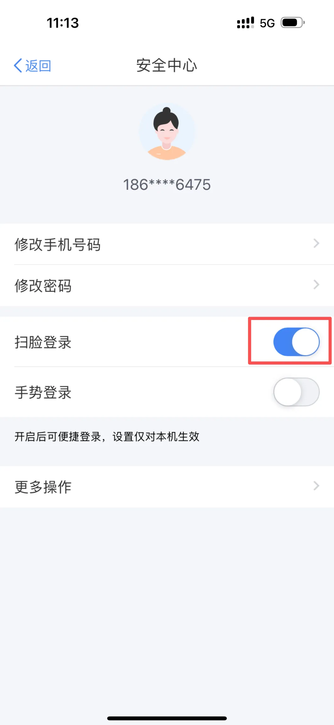 登录成功后,建议在APP中开启扫脸登录/指纹登录,方便又安全。点击APP右下角【我的】-进入【安全中心】-找到并开启【扫脸登录】/【指纹登录】开关,首次开启按提示完成人脸/指纹验证即可。