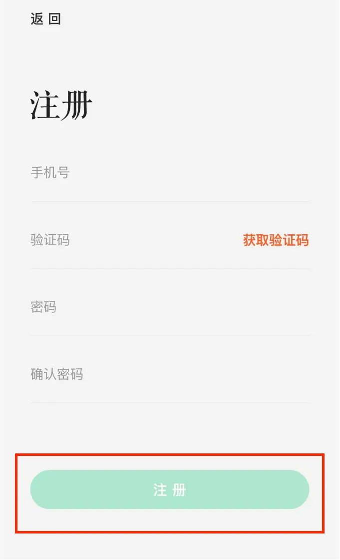 ② 点击【注册】按钮,输入本人手机号码、短信验证码、设置密码,完成后点击下方【注册】,即可登录账号。