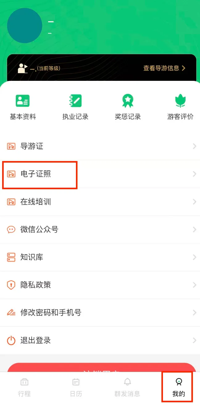登录后,点击【我的】→【电子证照】,找到以DZG开头的编号,这就是你的导游资格证书编号,记下编号(后续申请会用到)。