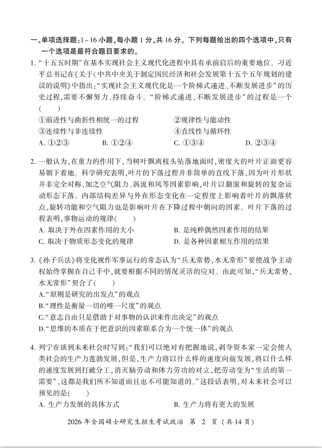 2026年考研政治真题及解析 |