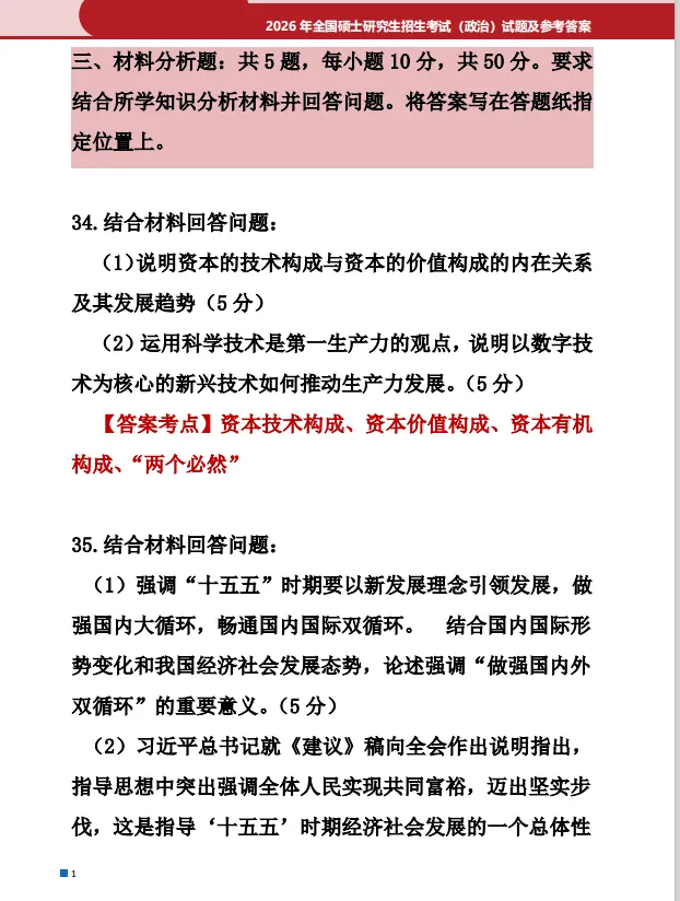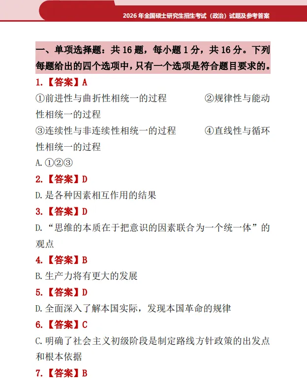 2026年考研政治真题答案解析 |